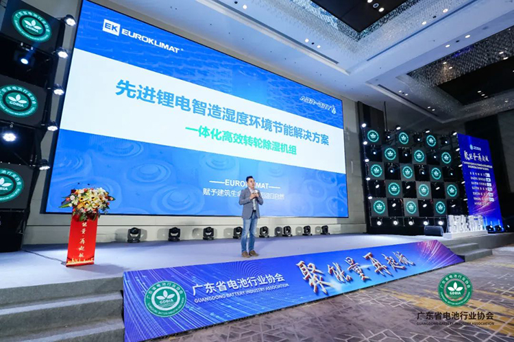 在第四屆粵港澳大灣區(qū)電池產(chǎn)業(yè)高峰論壇上,EK IECD工業(yè)環(huán)境控制事業(yè)部總監(jiān)王健以《先進鋰電智造濕度環(huán)境節(jié)能解決方案》為主題發(fā)表演講,和現(xiàn)場嘉賓詳細介紹了EK在鋰電工廠環(huán)境濕度控制方面的全套節(jié)能解決方案。
