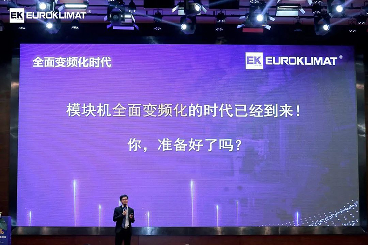 會議現場,EK空調產品經理就云智慧高效集成冷站、工業大多聯、變頻模塊機等EK核心產品的優勢特點、應用場景、應用案例進行了詳細介紹。