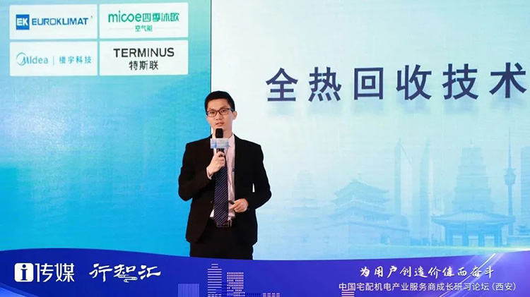 在響應國家“雙碳”目標的路徑中,熱回收技術成為了我國暖通空調行業正在積極探索的方向之一。來自不同應用場景的既有需求被全面激活,給“熱回收技術”市場的繁榮夯實了基石。本次論壇,EK空調產品經理陳旭金以《全熱回收技術的應用與發展趨勢研究》為主題發表演講,和現場嘉賓介紹了EK全熱回收技術的發展、優勢以及在酒店領域的應用案例。
