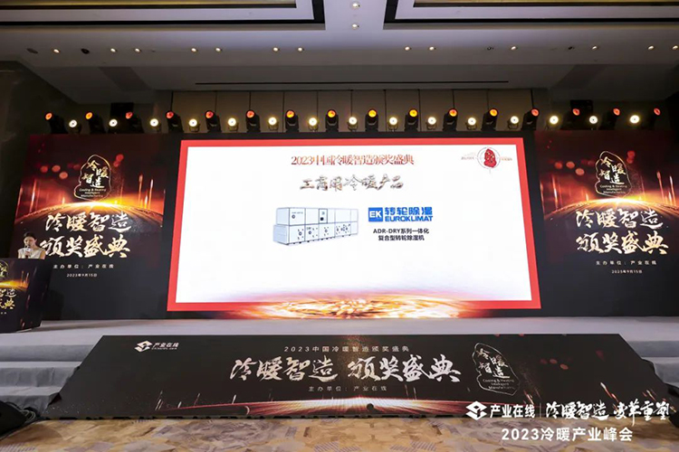 9月15日,2023中國“冷暖智造”頒獎盛典在上海隆重舉行。EK ADR-DRY系列一體化復合型轉(zhuǎn)輪除濕機憑借技術創(chuàng)新、高效節(jié)能等優(yōu)勢,榮獲“冷暖智造”產(chǎn)品大獎!