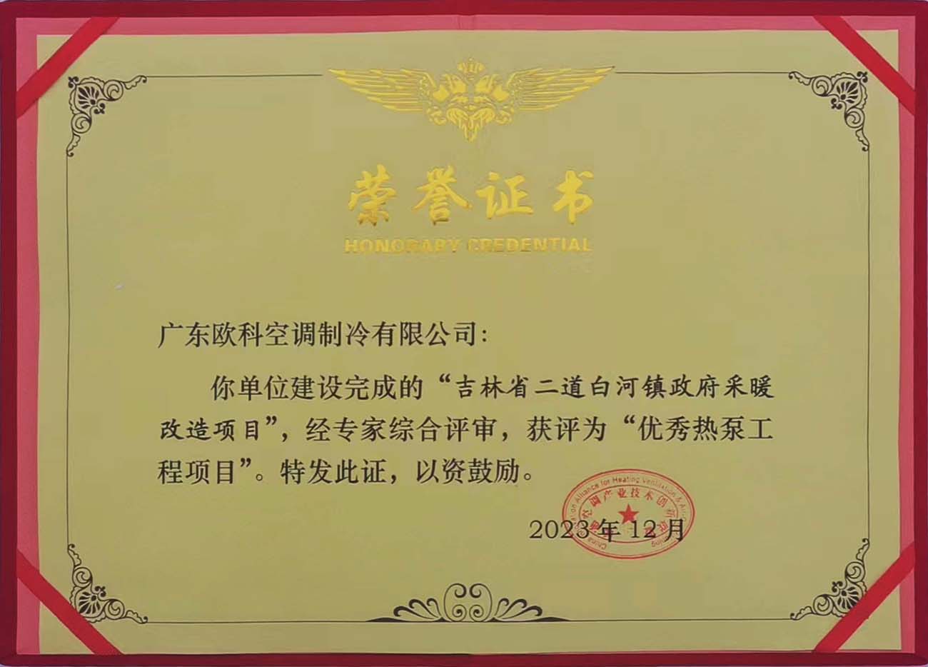 其中,在本次大會上獲評為“優秀熱泵工程項目”的是吉林省二道白河鎮政府采暖改造項目。根據建設方提出的采用清潔能源供熱的改造要求,該項目采用超低溫空氣源熱泵加電鍋爐蓄熱采暖技術。EK空調為項目配備了10臺EKAH超低溫空氣源熱泵機組,成功取代了傳統燃煤鍋爐,在節約能源的同時 ,更避免了污染物的直接排放,可有效緩解目前北方冬季天氣嚴重霧霾污染的狀況,助力實現“碳中和”目標,告別“供暖式霧霾”。