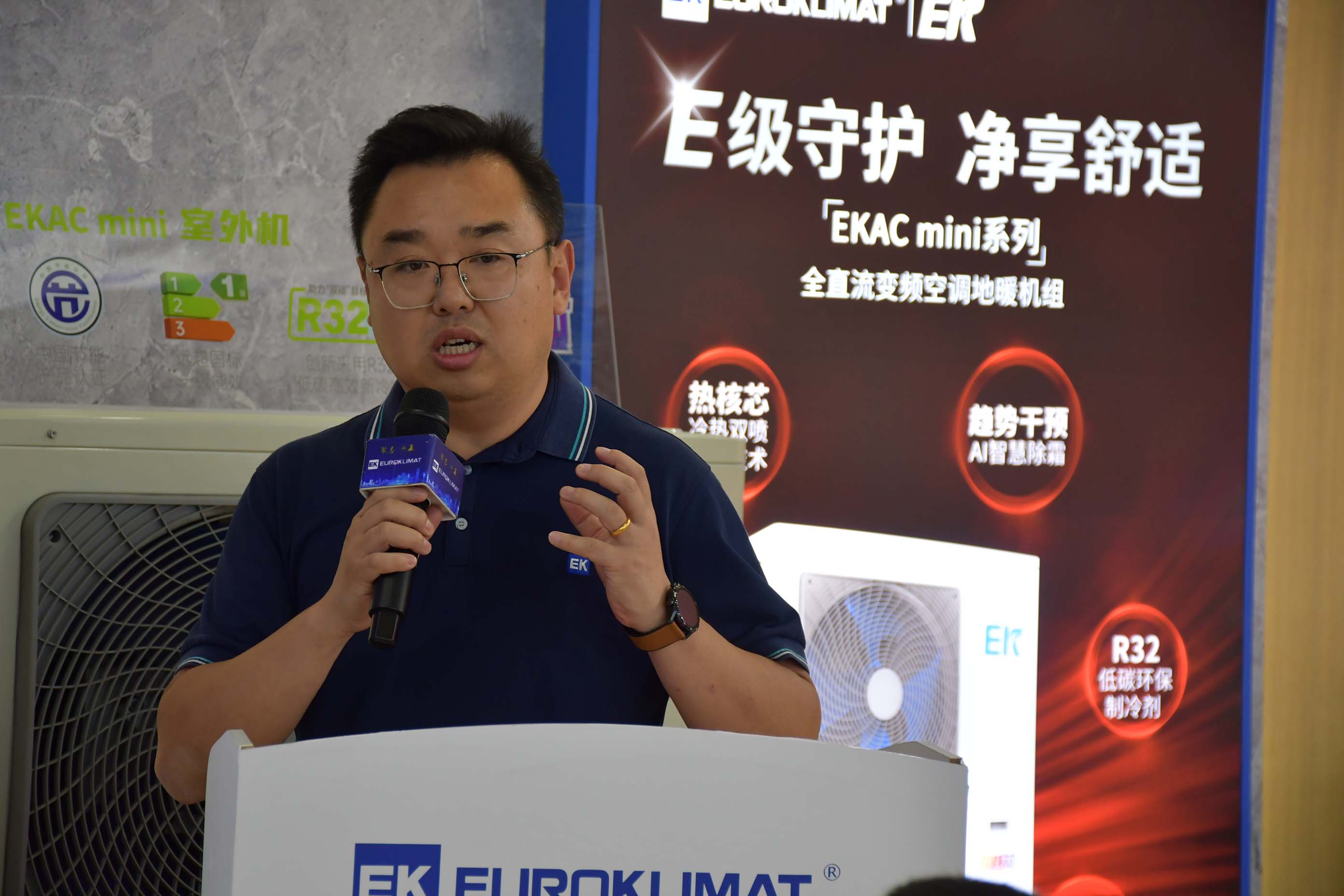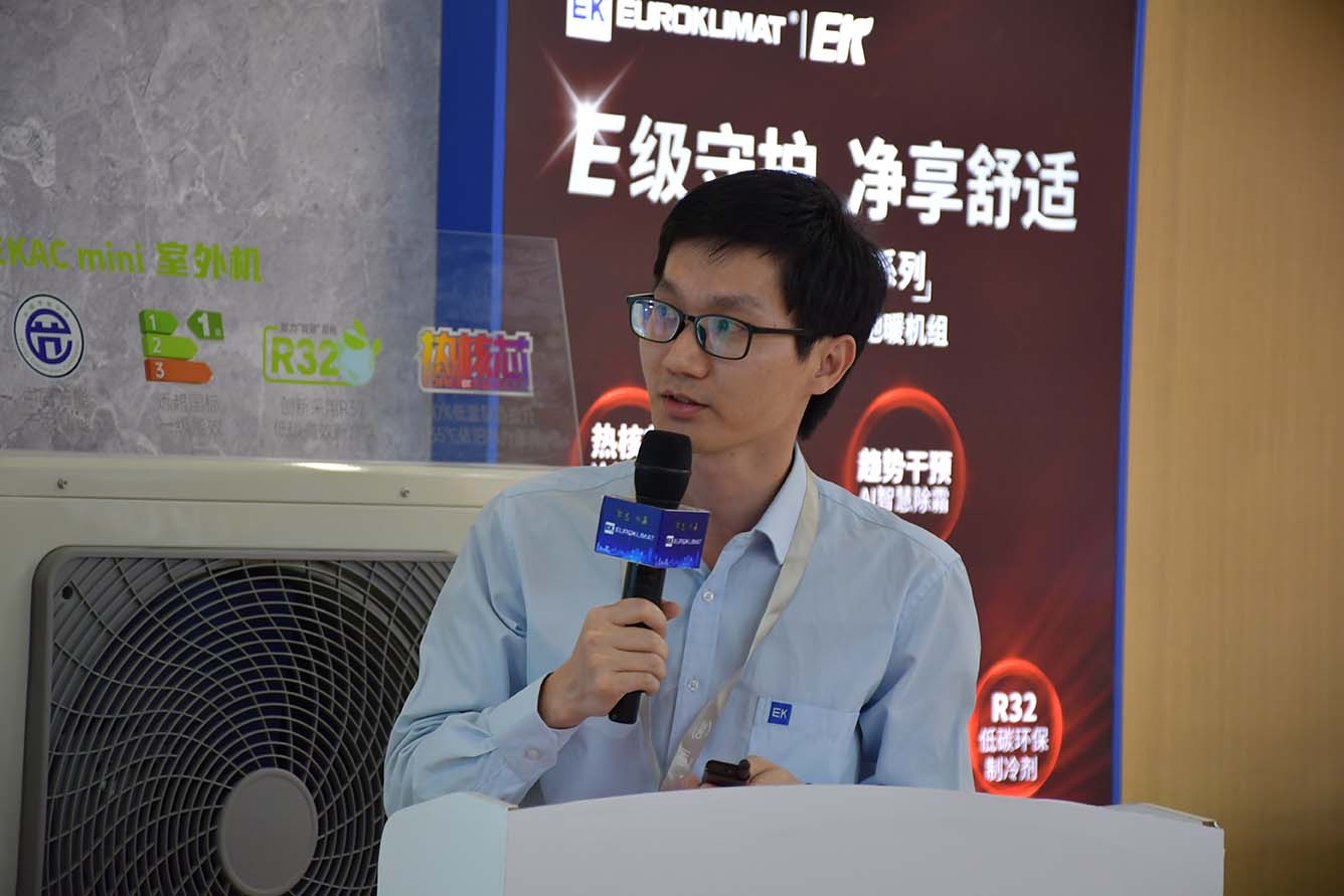 EK冷熱水系統(tǒng)事業(yè)部產(chǎn)品經(jīng)理陳旭金詳細(xì)介紹了“火麒麟”系列EKAH大型超低溫變頻空氣源熱泵機(jī)組的技術(shù)優(yōu)勢(shì)和應(yīng)用價(jià)值,特別強(qiáng)調(diào)了其在大型集中供暖方面的綠色運(yùn)行和智能化管理。