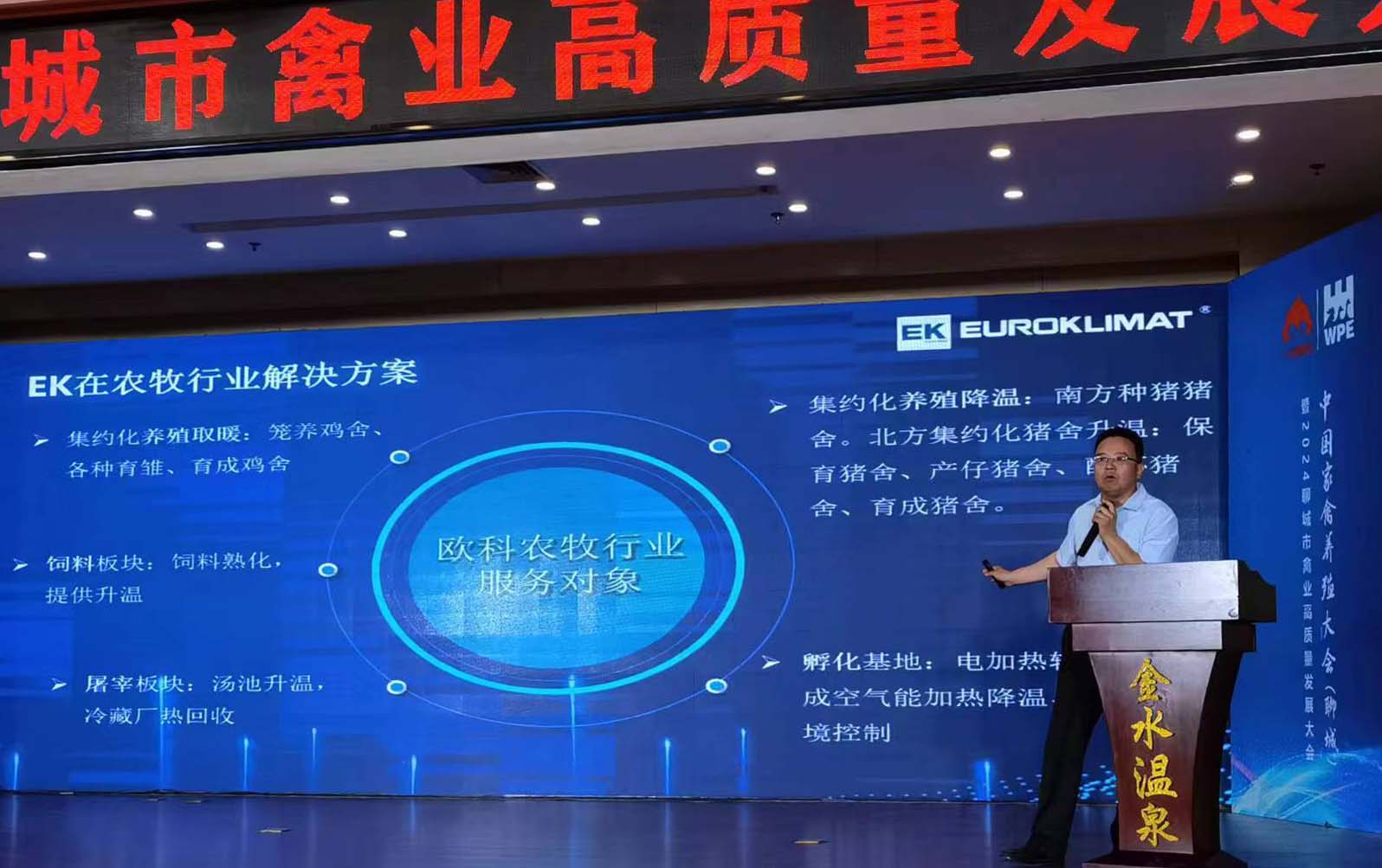5月30日-5月31日,中國家禽養殖大會(聊城站)暨2024聊城禽業高質量發展大會在著名的中國817肉雞之鄉和冀魯豫三省交界的蛋雞聚集地——莘縣順利召開。EK空調作為戰略合作單位,攜集約化養殖環控解決方案精彩亮相本次盛會,做專題報告并榮獲“年度消費者信得過優質禽產品金雞獎”