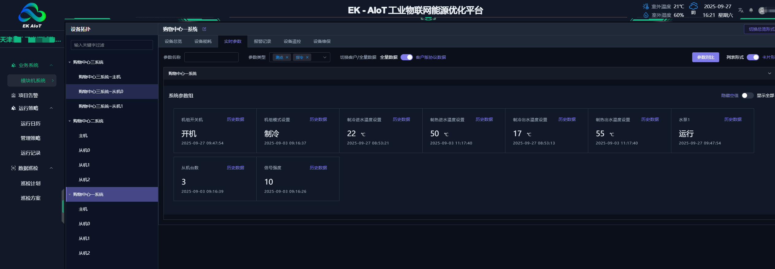 • 故障預警 遠程運維:能提前診斷機組故障并預警,部分小故障可遠程調試,無需等設備停機再到現場處理,避免影響商場運營,解決故障響應慢、停機損失大的問題。
