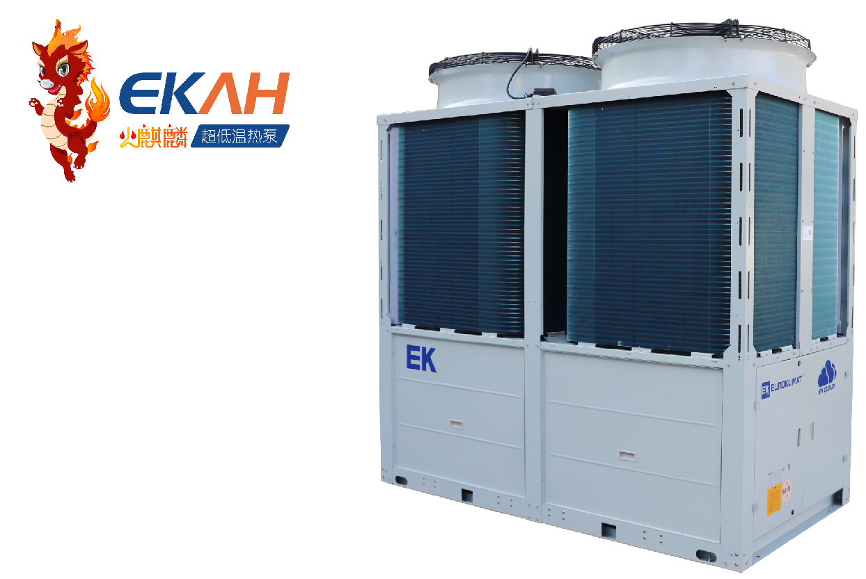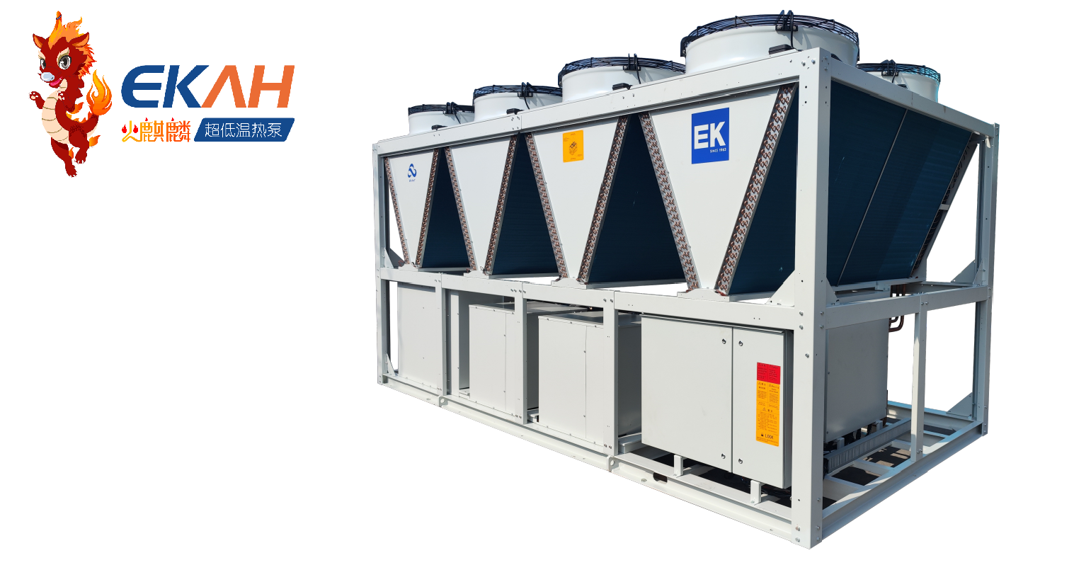 EKAH火麒麟系列變頻大型超低溫空氣源熱泵機(jī)組單機(jī)制熱量達(dá)562kW,冷熱雙一級(jí)能效,專為大型集中采暖設(shè)計(jì),可無縫拼接大幅節(jié)約安裝空間,滿足各類建筑高效冷暖需求。