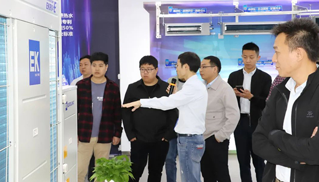 12月29日,“EK2020-千商活動”廣州辦所轄區域首批經銷商嘉賓蒞臨EK南方基地參觀指導。EK銷售總監彭健明、市場營銷總監王健和兩廣區銷售總經理陽柳對嘉賓們的到來表示了熱烈歡迎,并就未來合作展開探討。EK水系統產品管理部經理呂芳玉介紹了EK品牌實力、經營方式和與商家合作理念,同時介紹了EK在熱回收、超低溫制熱、精密控制方面的產品和技術。