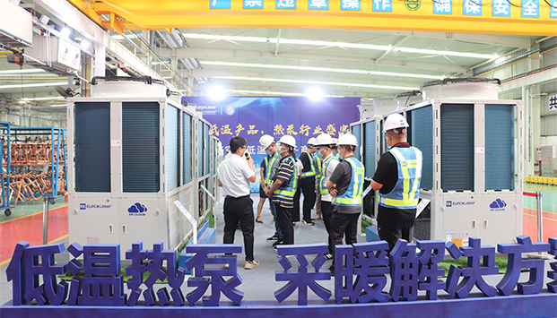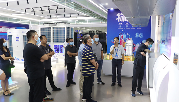 在參觀了EK空調展廳和實驗室后,經銷商一行來到了EK空調生產車間,工程師重點和大家介紹了EK低溫熱泵采暖解決方案。