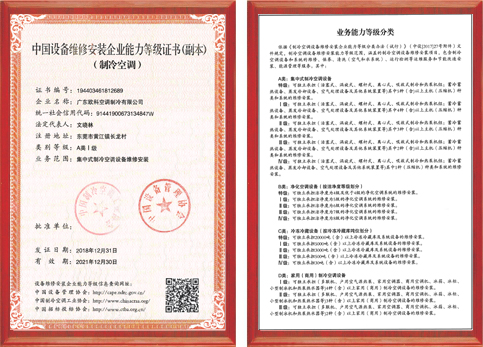 中國設備維修安裝企業能力等級證書
