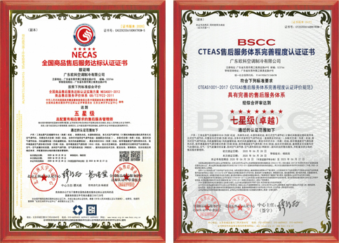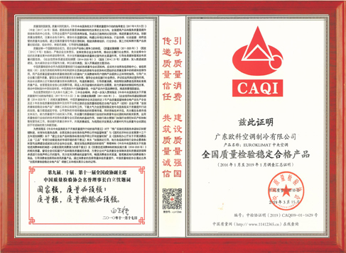 全國空調行業質量領先企業--中國質量檢驗協會